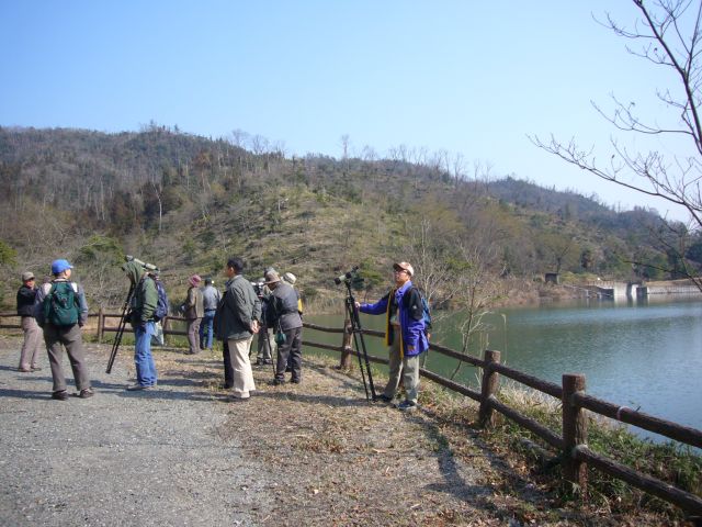 今年から調査時間にゆとりができたため,沼田川の調査と同一日に行いませんでした。天候は晴。昨年に比べてずいぶん暖かく,というか車の温度計は16℃もあり,暑い感じがしました。また,両ダムとも水位が下がりバスの釣り人も多く,カモの数は今年も少なめでした。10日後に行われる三川ダムの探鳥会が不安になりました。