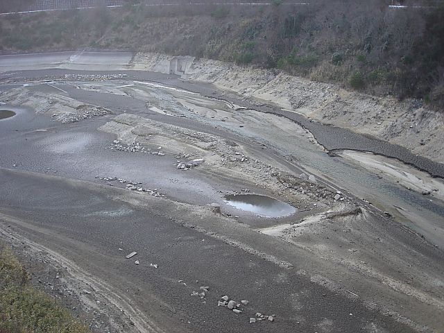 今年は沼田川の満潮が午後のため,朝から三川ダムと八田原ダムの調査を行いました。8時前に三川ダムに着いたときは,−3℃。寒いと言えば寒いですが,この下にある去年の様子を見るとそちらの方がもっと寒かったみたいです。今年は雪もなく,また昨年まで行われていた三川ダムの道路工事もなく,順調に調査を行うことができました。