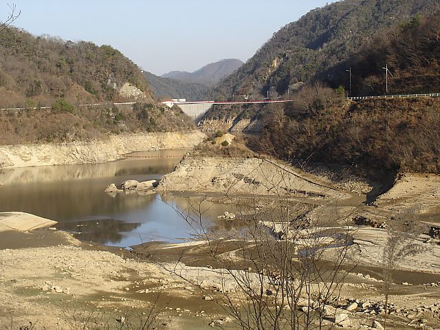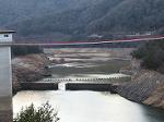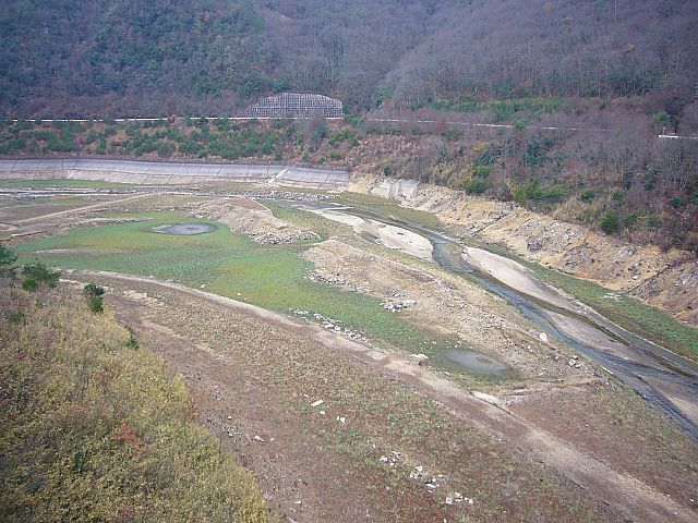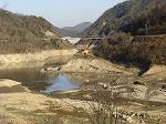 去年から今年にかけて雨が少なく,三川ダムと八田原ダムの貯水率が50%ぐらいになっているそうです。調査した時も干上がった状態で,1週間後に行った時はさらに減少している感じでした。八田原ダムの底に沈んだ宇津戸ダムの堰堤や道路が夢吊り橋の下に出てきていました。冬季のガンカモ調査時では,今までで一番減っていると思います。そのため三川ダムのカモの数はあまり変わらなかったものの八田原は減少していました。