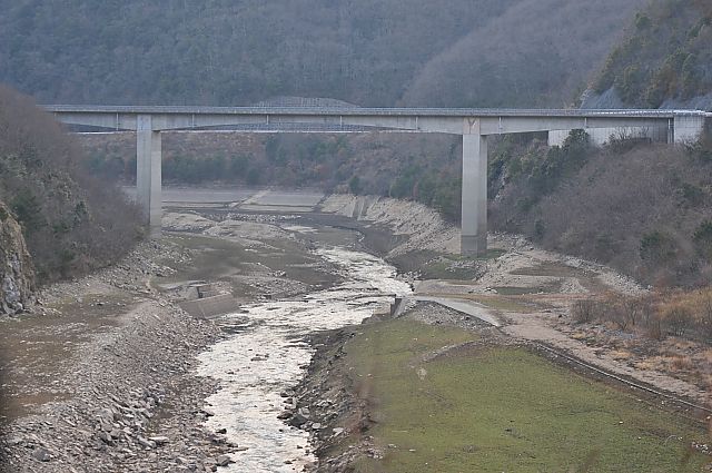 八田原ダム 井庄原大橋下流 (緑色の草が!) |