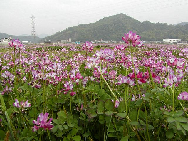 そんなこんなで結局観察できたシギ・チは,タシギとケリのみでした……。あ〜あっ……。再来週はシギ・チ調査というのに……。まあ,チュウサギもきていたということで,よしとしましょう!レンゲ畑にいるサギ類は美しいもんなあ!! で,レンゲの写真です。(^^ゞ