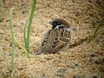 そのうち2羽ともゆっくりと目を閉じたり開いたりし始めました。うん?眠り始めたん……?10分ぐらいこのままの状態で,その後何もなかったかのように2羽のスズメはもみ殻をひっくり返し始めたんですけど,いったい何をしていたのでしょうかね……?