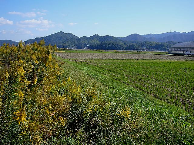 田んぼは少しずつ稲刈りが始まっているものの,ほとんど青々とした稲。