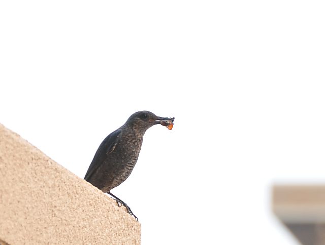 | 餌をくわえたイソヒヨドリ雌 |