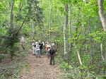 | 【2日目 6月5日(日) 5:00〜12:00 天候 曇】 2日目は,公園センター付近の探鳥です。 朝の5時からの探鳥で,集合地に着くとすでに何人かの方は赤い鳥を求めて出発されていました。話を聞くと,もう遠くに行った後とか……。 気を取り直して鳥見を始めました。少し歩くと,ようやく赤い鳥,アカショウビンの鳴き声が聞こえました。その後は聞こえなくなり,あとはキセキレイの大きな声ばかりがこだまするようになりました。ただ,トラツグミの声は,よく聞こえました。 その後,公園センターで朝食をとり,昨日と同様に立烏帽子の駐車場に行きました。 今回は2班に分かれて,探鳥を開始しました。私は,御陵までの往復を担当し,いざ出発。昨日よりは時間帯が早く(午前8時過ぎ),コルリの声があちこちから聞こえてきます。気をよくして進みますが,なかなか鳥の姿は見えません。ミソサザイやアカゲラの姿もほんの一部の方しか見ることができませんでした。それでもヒガラはすぐ近くに来てじっくりと蝶ネクタイの姿を見せてくれました。 そうこうするうちに御陵近辺に。すると,遠くから「ヒン,カラカラカラ……。」何年か前に見たコマドリ。今年も来てくれていました。ただ,コルリにしてもコマドリにしても,姿は全く見ることができません。そういう習性なので仕方がありませんが,じっくりと姿を見てみたいものです。 御陵からは,立烏帽子の駐車場に引き返し,途中でかわいらしいミソサザイやジュウイチの飛ぶ姿を観察することができました。往復約5kmの道のりですが,みなさん元気に歩かれていました。 こうして2日間の教室は終わりました。今回も赤い鳥の姿を見ることができなかったものの,鳥たちのさえずりはしっかりと聞くことができました。めったに聞けない野鳥もいましたので,忘れないために野鳥の声のCD等で確認しておこうと思います。 【観察種】 合計35種 ~~~~~~~~~~~~~~~~~~~~~~~~~~ アオサギ ハチクマ キジバト アオバト ジュウイチ カッコウ ツツドリ ホトトギス ハリオアマツバメ アカショウビン カワセミ アオゲラ アカゲラ コゲラ イワツバメ キセキレイ ヒヨドリ カワガラス ミソサザイ コマドリ コルリ トラツグミ クロツグミ ウグイス キビタキ オオルリ ヒガラ ヤマガラ シジュウカラ メジロ ホオジロ クロジ カケス ハシボソガラス ハシブトガラス ※番外 ソウシチョウ |