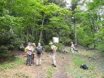 | 【1日目 6月4日(土) 11:00〜20:30 天候 晴】 天気が心配された2日間でしたが,両日ともいい天気になりました。 1日目は,竜王山へ。昨秋,個人的に訪れたときにハギマシコに会った場所です。今回は,夏鳥を求めてあがりました。表紙の写真は,竜王山山頂で昼食をとっているところです。風もほとんどなく,気持ちよく食べることができました。 それから立烏帽子の駐車場に行き,探鳥開始。新緑のブナ林はとても美しいのですが,肝心の鳥はなかなか現れません。昼過ぎだったので声も少なめです。その中で派手に鳴いている鳥がいます。あまり聞いたことがないさえずりで何かと思っていたら,ソウシチョウの声でした。外来種のこの鳥,だんだんと繁殖分布を広げているようです。この他,珍しい鳥としてクロジがいました。残念ながら姿は見えなかったものの,声はしっかりと聞くことができました。 立烏帽子をぐるっとまわって池の段に出るとようやく鳥の姿が目に付くようになりました。まず出たのはハリオアマツバメ。以前にも見たことがあるこの鳥,もしかしたら繁殖しているかも??次は,ホトトギス。いつもは声しか聴けないこの鳥ですが,今回は大サービスで,鳴きながら飛びまくってくれました。本当にサービス満点のホトトギスの個体でした。 そして,今晩の宿泊地である県民の森公園センターへ行き探鳥地の下見をした後,夕食となりました。みんなで楽しくお酒を飲みながら,鳥の話をしました。 夕食後は,夜の野鳥を求めて公園センター付近を歩きました。しかしながら増水した川の音がうるさいのか,野鳥が鳴かないのか分かりませんが,ほとんど確認することができませんでいした。でも,空を見上げれば満天の星。こちらが目的で来ていれば,最高に面白かったでしょうね。公園センターの方からは,流れ星の音についても話を聞くことができました。 |