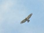 | 教室では,初めて佐伯運動公園でタカの渡りを観察しました。 「佐伯運動公園」は,広島県内でトップのタカの渡り観察ポイントです。今までは新山だけでハチクマを観察していましたが,今年はこちらでも教室を開くことになりました。 運動公園に着いたのは10時半頃。広島タカ研のSさんの話では,すでに200羽以上のタカが渡ったとのこと。「あ〜,終わったか……。」と思ったとたんに,近くで20羽ぐらいのタカ柱ができました。それからもぼつぼつとタカが渡ります。この佐伯運動公園は,見える範囲が広いので,あちこちから「タカが渡っている!」という声が聞こえてきます。これは,定点で長年調査されているためでしょうか。全員が同じ方向を向くのではなく,「カウントをする人」「新たなタカを探す人」「タカの渡り方向を確認する人」など,自然な形で役割分担が行われている結果かなと思いました。 遠くを渡る個体ばかりかと思っていましたら,けっこう近くを渡ってくれた個体もあり,なかなかよかったです。(^0^) 実質観察時間は3時間ぐらいでしたが,この時間帯に200羽以上のタカが渡ったとSさんがおっしゃっていました。この日の最終的な結果をタカ研の速報ページで見ると,531羽のタカが渡ったそうです。そのうちハチクマが483羽,ノスリは35羽渡ったそうです。この時期にハチクマが483羽なんてすごいですね。ノスリも増えてきたので,秋も深まりつつある感じです。 佐伯運動公園で観察されているみな様。今日はどうもありがとうございました。おかげさまで,多くのタカの渡りを観察することができました。 【観察種】 合計 15種 ~~~~~~~~~~~~~~~~~~~~~~~~~~ キジバト ミサゴ ハチクマ ツミ サシバ ノスリ トビ ハヤブサ モズ ハシボソガラス ヤマガラ ツバメ ヒヨドリ メジロ スズメ ※10:30〜13:40に渡ったおよその数 ハチクマ=200 サシバ=2 ノスリ=5 ツミ=2 ※この日の佐伯運動公園の記録は,広島タカの渡り研究会の速報ページを参照してください。 (9月29日佐伯運動公園の記録) |