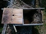 | 壊れかけの古い巣箱 | この巣材の上に枯れ草が ありました。 |