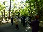 | 今回の教室は,岡山県の「若杉天然林」で行われました。中公の教室では,初めての探鳥地です。個人的にも行ったことがなく楽しみにしていましたが,仕事が入ったため参加できませんでした。 そのかわり教室のIさん(表紙写真とテキスト),女性のYさん(テキスト),男性のYさん(2枚の写真)より,当日の様子をメールで送ってもらいましたので,アップさせていただきました。どうもありがとうございました。 ----------------------------------------------------------------------------------------- 【1日目(6/7)】(Iさんより) 今日、明日と 岡山県の兵庫県との境にある若杉自然林での泊りがけでの野鳥観察教室です。 心配された天気ですが、集合場所の中央公民館では曇り、現地の天気予報も 夜は雨ですが、昼間は曇りの予報で何とかなりそうです。 行きのバスの中で、M講師から5/18に日本野鳥の会岡山県支部の探鳥会に参加された時の観察リスト説明があり、この中にまだ姿を見ていないアカショウビンや、クロジ、マミジロの今までの観察リストにない名前があり、期待が膨らみます。これらを含む鳴き声を繰り返し聞いて、現地での観察会に備えます。(私はすぐに忘れてだめでした) 12時過ぎにふもとの駐車場に到着しました。曇っていてすこし雨がふりそうな感じです。でもアカショウビンにはベストコンディションかも?若杉天然林には、ここから沢沿いに歩いて登って探鳥をしていきます。駐車場からすぐの場所で、オオルリが鳴いていて、スギのてっぺんに姿を見つけることができました。曇っていたので、きれいな青色で見えなかったのですが、全員スコープで観察することができました。 オオルリを観察していると遠くで、キョロロロロロロ〜のアカショウビンの声が。ほんの入り口からこれです。いけそうです。沢を登っていくと、あちらこちらでミソサザイが大きな声で鳴いています。すぐ近くで鳴いているのに、見つけられずにいましたが、M講師はすぐにいる場所を見つけます。見つけられずにうろうろしている我々から見ると、まさに神業。おかげで全員が姿を見ることができました。 沢をどんどん登って行って、若杉峠への道との分岐のところで、先頭のGrはアカゲラの幼鳥を観察したとのこと。ここはケラ類が飛び交っているのですが、私はしっかり姿を見ることはできませんでした。この分岐から左側のコースを取って、ブナ、ミズナラの大木群生エリアに向かいます。周りは広葉樹の大木が群生していて、本当に素晴らしいところです。少しきつい登りを登っていくとクロツグミ、ジュウイチの鳴き声も聞こえました。 ここで少し雨が降り始めたので、引き返すことにしました。帰り道も相変わらずミソサザイがあちこちで鳴いていました。駐車場にたどり着いてバスに乗り、宿に向けて出発すると、ものすごい雨が降り始めました。ちょうど良いタイミングで行動することができ、ラッキーでした。バスの中で、1日目の鳥合わせを行った結果は、以下の通りです。 ジュウイチ、ホトトギス、ツツドリ、アカショウビン、アカゲラ、カケス、シジュウカラ、ツバメ、ウグイス、ミソサザイ クロツグミ、キビタキ、オオルリ、アオサギ(14種) 宿は、国民宿舎あわくら荘で、ラジウム温泉の宿です。夕食後、雨も止み、夜の探鳥に出るGrもありました。でもカエルの声がおおきく、鳥の声を聞くのは無理な状態。川では、蛍を1匹観察できましたが、それ以外の収穫はありませんでした。(宿の人の話だと 蛍にはまだ時期が早いとのこと) 【2日目(6/8)】(Iさんより) 早朝から、宿の周りの探鳥に出られる方がおられました。私もその一人で、粟倉温泉の元湯のほうに川をさかのぼって行きました。ここでは、里の鳥 キジバト、トビ、コゲラ,カラス類、ヤマガラ、ヒヨドリ、セキレイ類、カワラヒワ、ホオジロが観察でき、ラッキーな人は、カワセミも観察したとのことでした。また、宿から下流の橋では、イワツバメが営巣していて、これは宿の出発前に全員が観察することができました。 2日目も同じふもとの駐車場からの探鳥です。 今日は、曇っているのですが雲は薄く、天気は大丈夫そうです。駐車場でバスを降りると、いきなりキョロロロロロロ〜の声が。今日は何とか姿を見たいものです。 昨日ミソサザイが見られた森の斜面で、今日もミソサザイが鳴いています。今日は、見つけるのに慣れた人も増え、姿をすぐ見つけることができました。ここで、トラツグミの姿も(残念ながら私はだめ)見られました。 今日は、分岐点から若杉峠を目指して直進します。 途中、何回かアカショウビンの声を聞きましたが、姿を見ることができません。途中で、カメラでアカショウビン狙いの人もおられましたが、今日は見れていないとのこと。若杉峠を目指していくつかのGrで登っていきましたが、Grによって、ゴジュウカラを見たGr、アカゲラやオオアカゲラを見たGr等 運、不運はありましたが、何かは観察できているようです。また峠付近