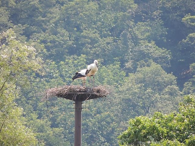 | コウノトリ観察中 | 巣上のコウノトリ |